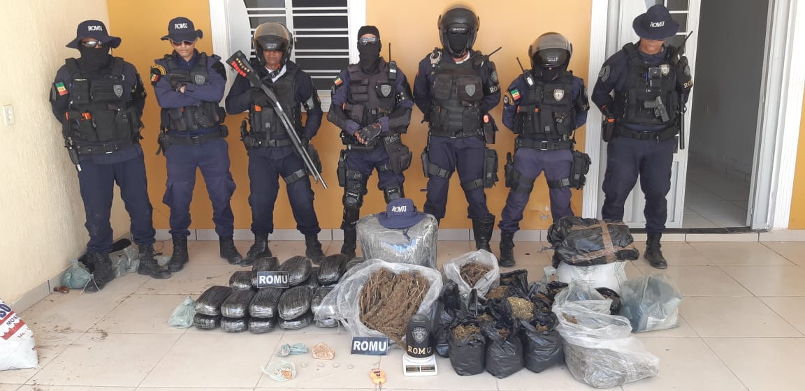 Ainda durante a operação, dois homens foram detidos. Ao avistarem as viaturas da Ronda Ostensiva Municipal (ROMU) eles abriram fuga a bordo de uma moto e tentaram descartar uma trouxa de maconha.