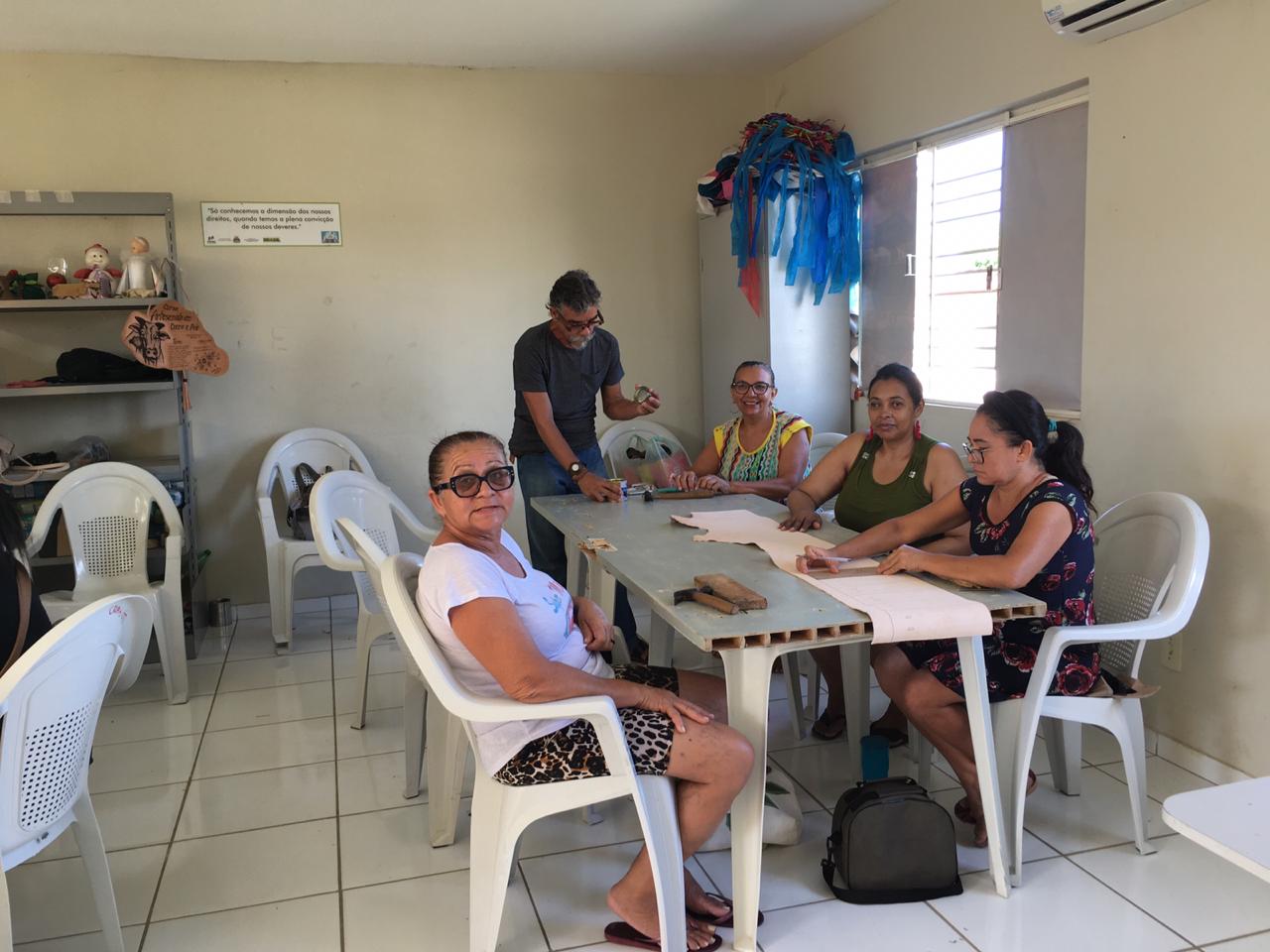 Beneficiários do Cras João de Deus aprendem a confeccionar artesanato em couro