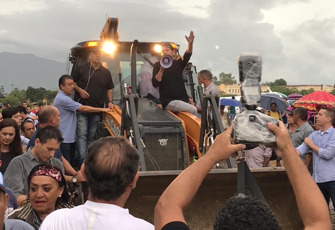 Senador Cid Gomes tenta entrar em batalhão da polícia com retroescavadeira e é baleado