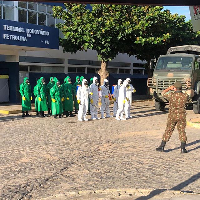 Na manhã desta sexta-feira (17), durante o horário das 6h às 7h, Policiais Militares do 5º BPM deram apoio ao 72º BIMtz (Exército Brasileiro) em ação de desinfecção contra o coronavírus no Terminal Rodoviário de Petrolina-PE, com o intuito de evitar a transmissão do vírus por ser um local de grande circulação de pessoas, e proporcionar tranquilidade e segurança para todos os moradores locais.