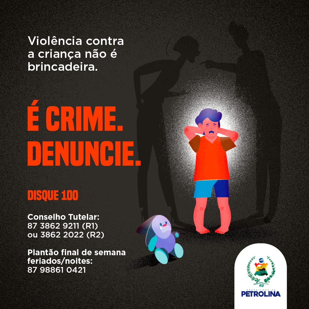 A violência contra crianças e adolescentes parte, muitas vezes, de lugares onde menos se espera. Para zelar pelo direito desse público, o Conselho Tutelar atua como uma rede de amparo, especialmente quando se trata de mau-trato. A Prefeitura de Petrolina lembra que cuidar dos pequenos é uma tarefa de todos. Por isso, disponibiliza canais de denúncias e pede que não hesitem em contactá-los ao perceberem qualquer sinal de abuso.