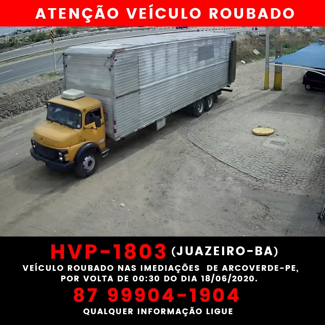 Foi tomado de assalto um caminhão baú Mercedes Benz 1113, truck, ano 1996, placa de Juazeiro-BA, HVP 1803, de propriedade de Lourival Pires dos Santos Moura, carregado de molas para colchões. A ação dos criminosos aconteceu ontem, por volta da meia noite na BR 232 na subida de Mimoso chegando na cidade de Arcoverde. O motorista, Richarles Macedo Coelho, foi feito refém e o deixaram, encapuzado na cidade de Tacaimbó-PE, roubando também todos os pertences pessoais do motorista (carteira/celular/sapato).
