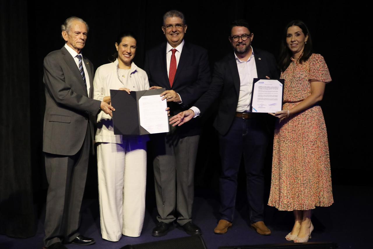 Assinaram o documento a governadora Raquel Lyra, Ricardo Essinger, Guilherme Cavalcanti (secretário estadual de Desenvolvimento Econômico), Camila Barreto (diretora regional do Senai em Pernambuco) e Guilherme Coelho (presidente da Abrafrutas e Assessor Especial do Governo de Pernambuco).