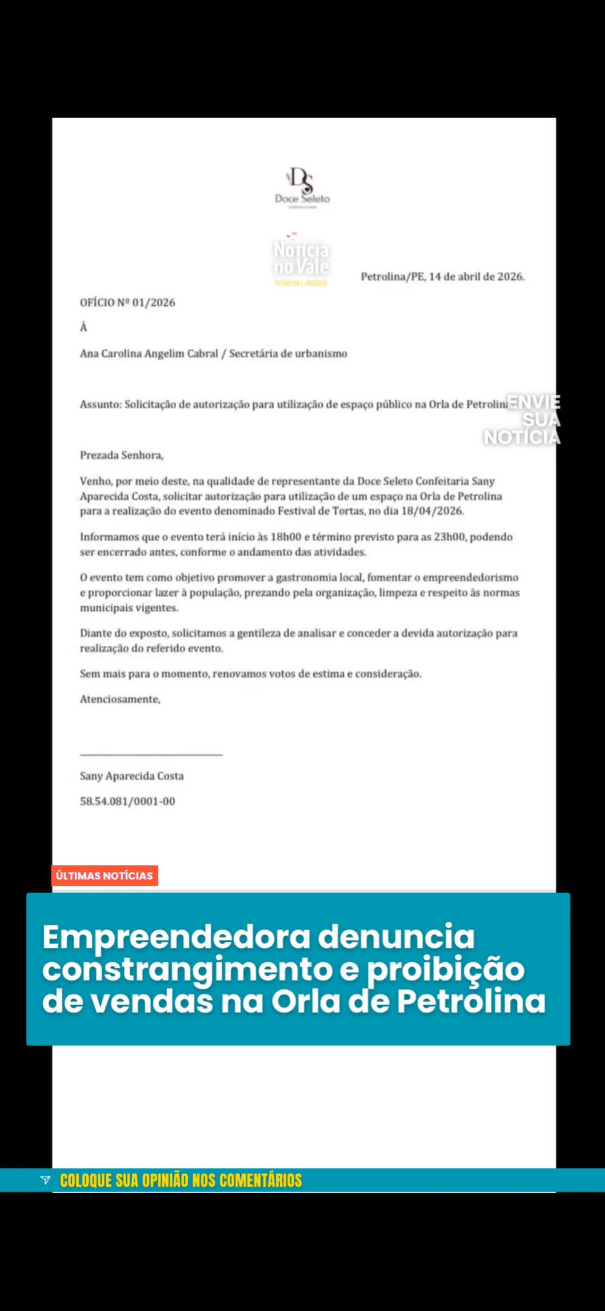 O caso reacende o debate sobre políticas públicas voltadas ao comércio informal e ao incentivo ao empreendedorismo em Petrolina, especialmente em espaços públicos movimentados como a Orla da cidade. A prefeitura de Petrolina, com a palavra.